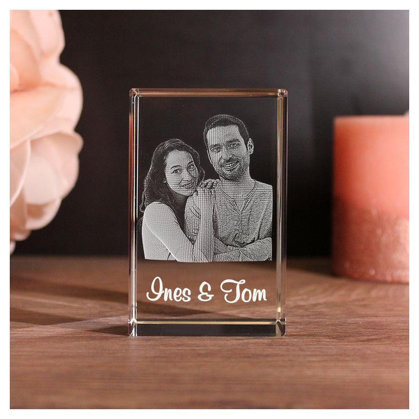 Mit diesem schönen Glaskristall kannst du einem besonderen Menschen eine große Freude bereiten. Wir halten euren ganz besonderen Moment für die Ewigkeit fest. Und das auch noch in 3D! Egal ob zu Weihnachten, zum Geburtstag oder zum Jahrestag. Mit diesem Geschenk liegst du immer goldrichtig! Wir gravieren in den Glasquader dein Wunschfoto in 3D und deinen Wunschtext ein.