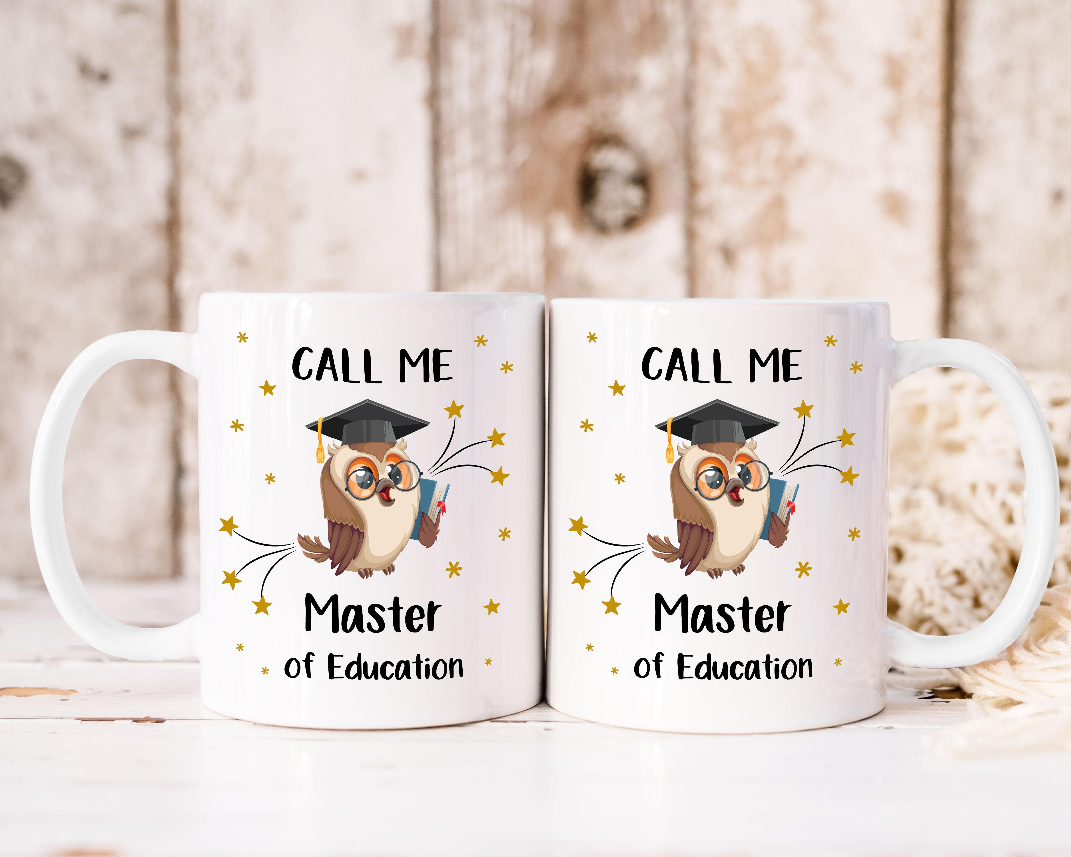 Du möchtest einem lieben Menschen eine Freude bereiten? Zur bestanden Prüfung, Weihnachten, Geburtstag oder als kleines Mitbringsel zwischendurch? - mit dieser Tasse hast du das perfekte Geschenk. Natürlich ist sie aber auch der perfekte Alltagsbegleiter für dich selbst! Egal ob auf dem Frühstückstisch oder dem Schreibtisch bei der Arbeit - hier hast du einen echten Hingucker. Neben dem schönen Eulenmotiv kommt der Text "Call me Master of Education!" einher.