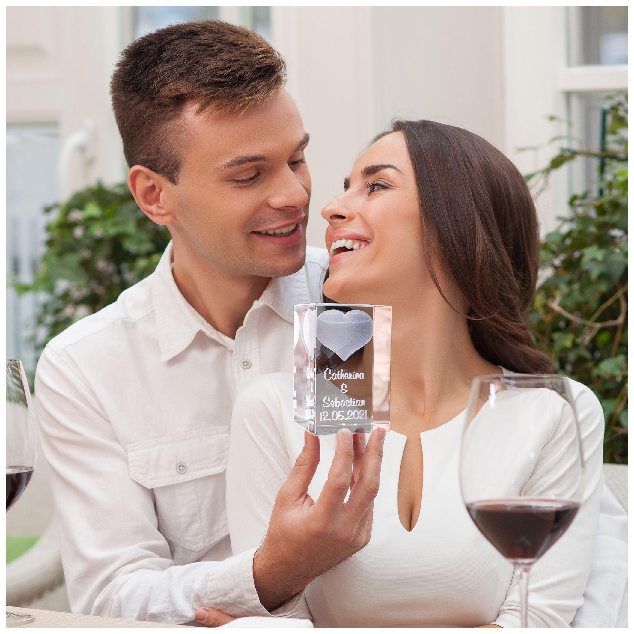 Neben einem schönen Herzmotiv gravieren wir deine zwei Wunschnamen und ein Wunschdatum oder kleinen Wunschtext mitten in das Glas ein.