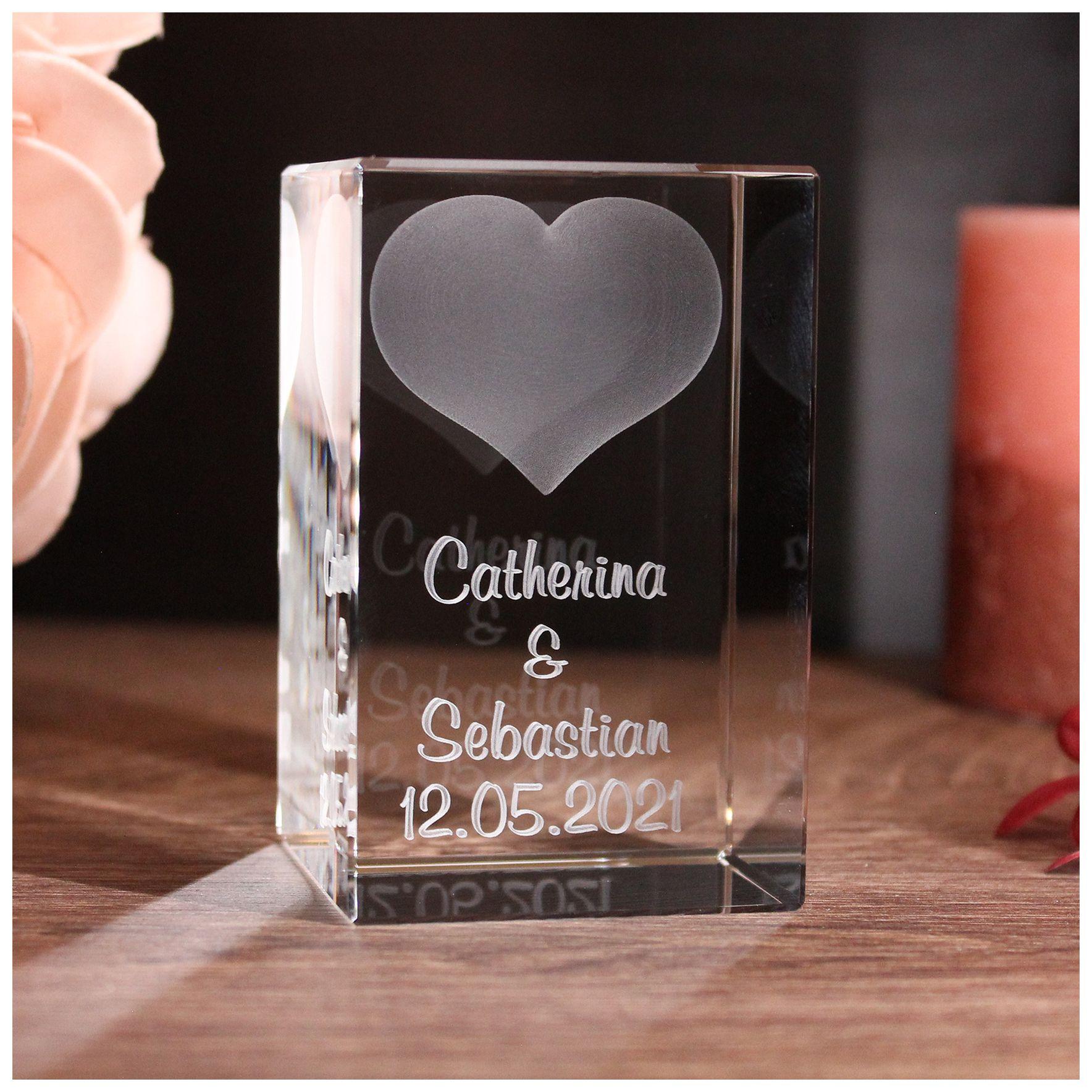 - HD Laserinnengravur Herz mit zwei Wunschnamen + Datum im Hochformat