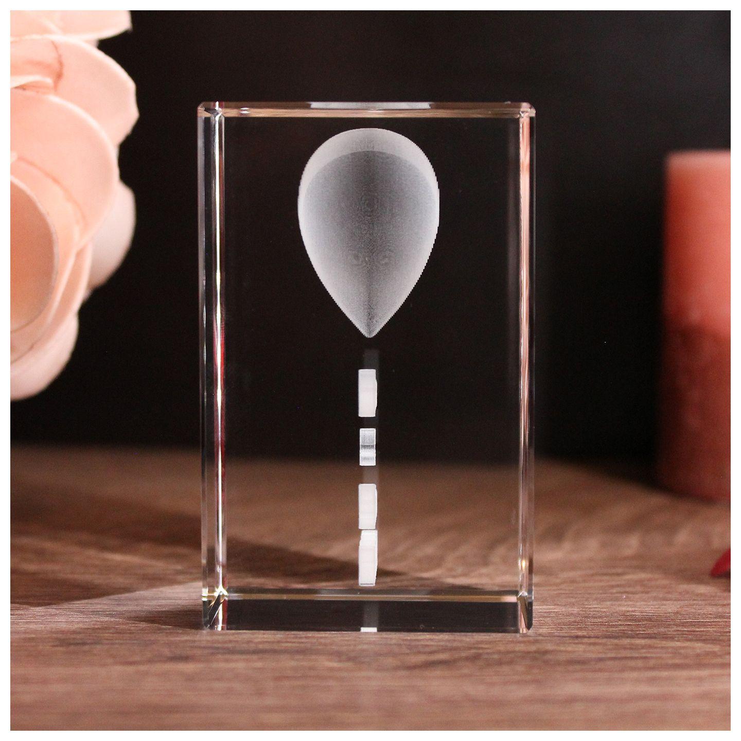- 3D Glaskristall in den Abmessungen 80mm x 50mm x 50 mm (Höhe x Breite x Tiefe)