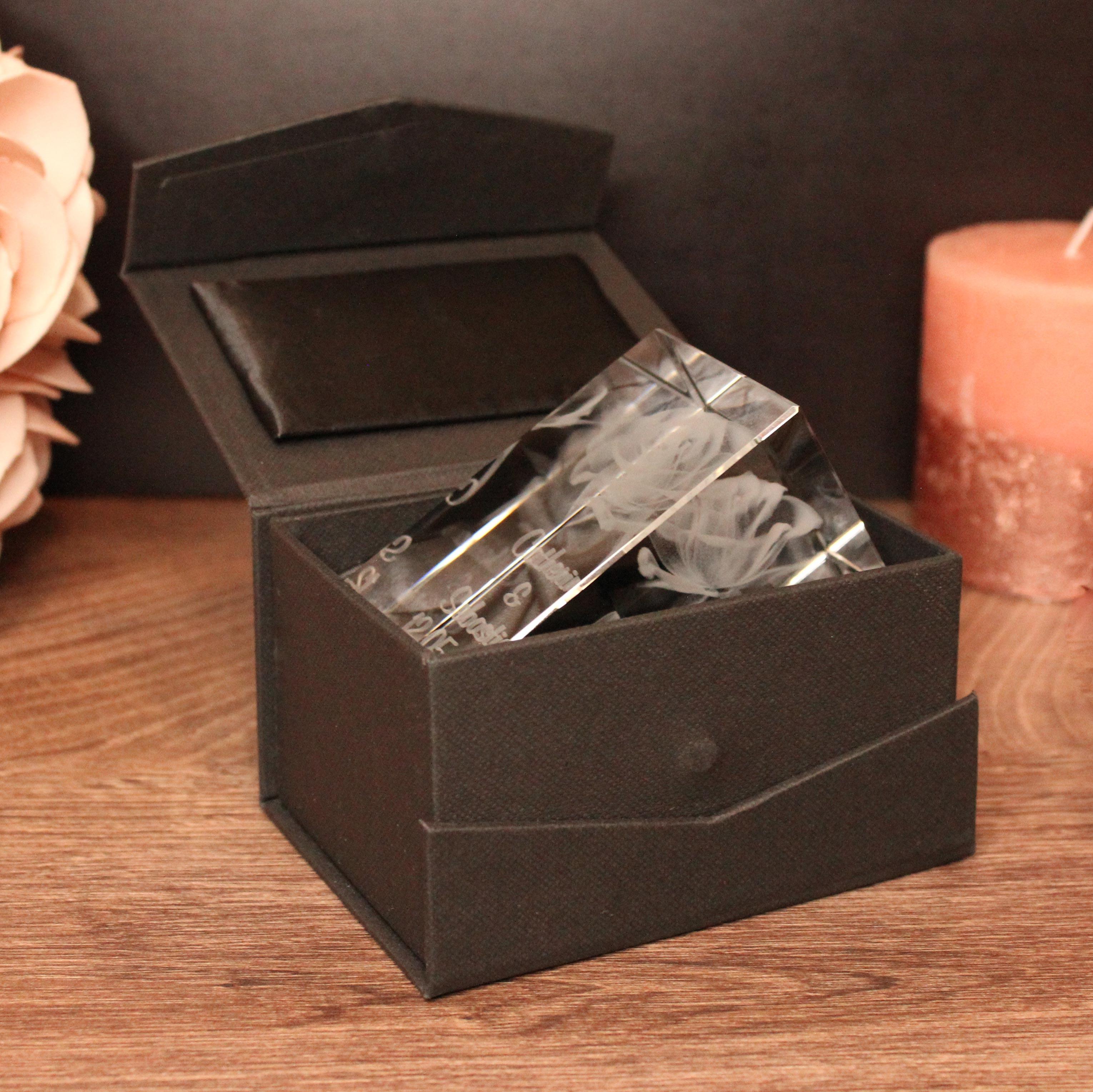 - 3D Glaskristall in den Abmessungen 80mm x 50mm x 50 mm (Höhe x Breite x Tiefe)