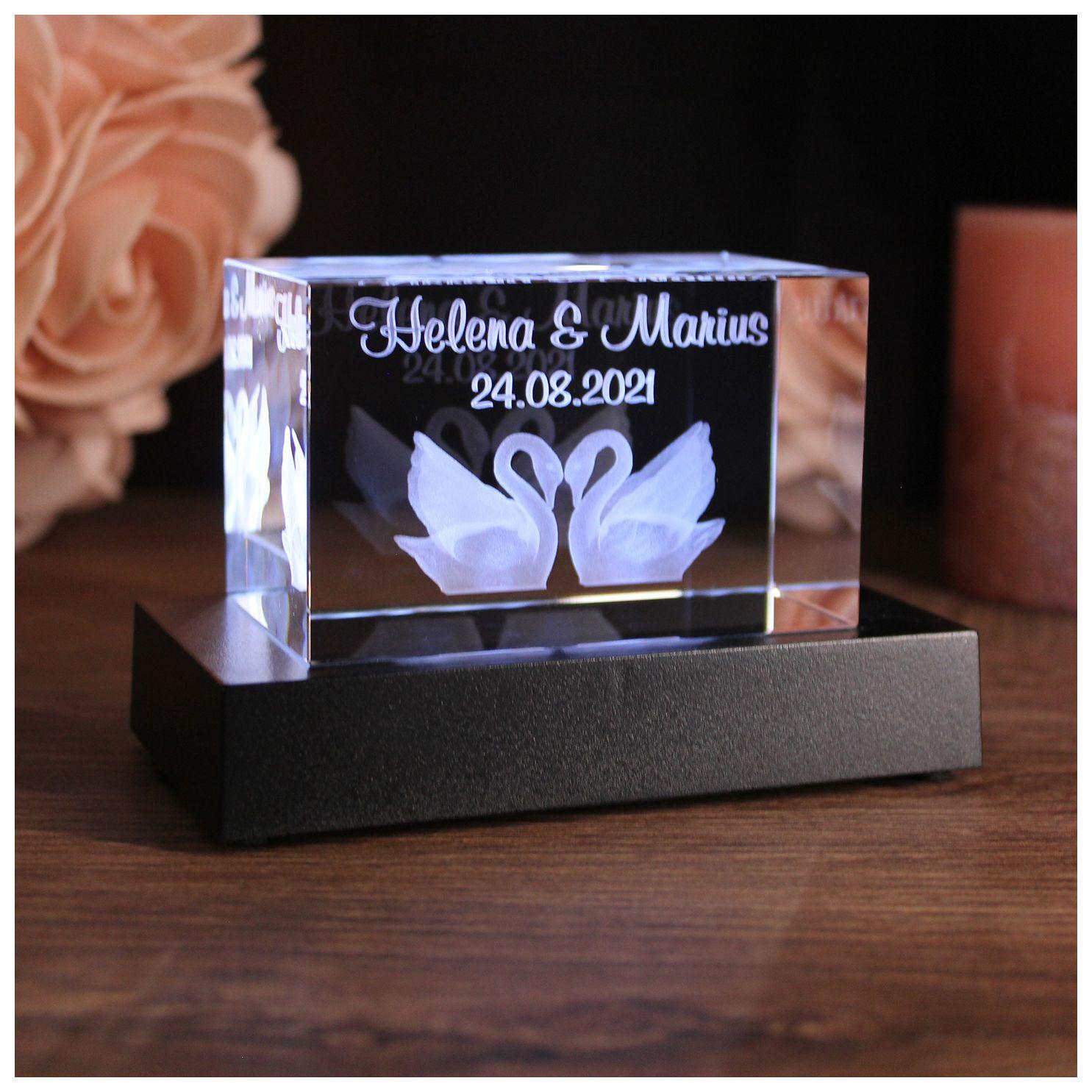 Produktinformationen "LoveGoals 3D Glaskristall zwei Schwäne mit Wunschnamen"
