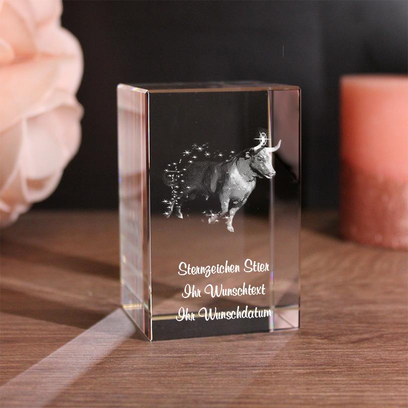 Produktinformationen "Lovegoals 3D Glasquader Sternzeichen Stier mit Deinem Wunschtext graviert"